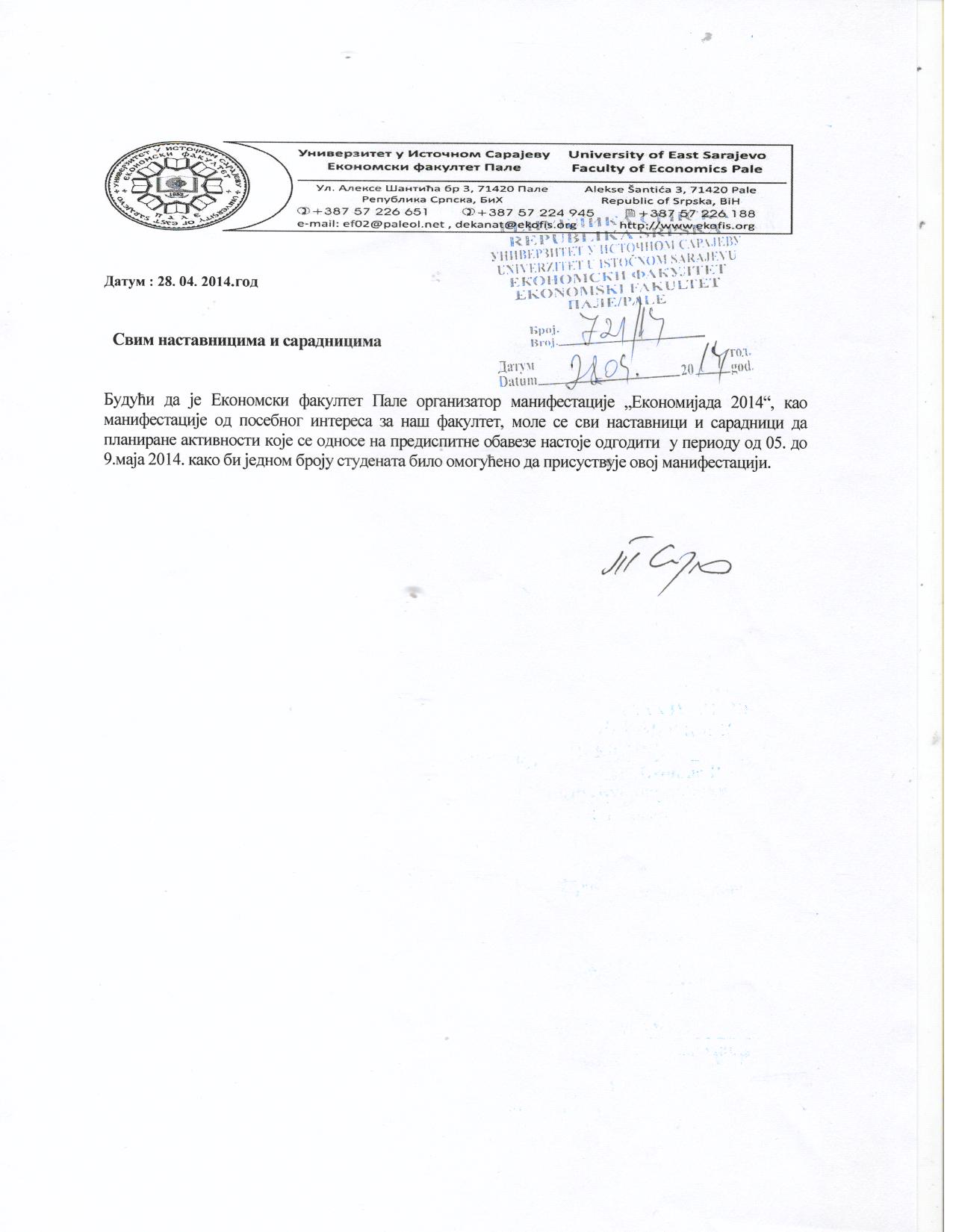 Obavještenje o odlaganjima predispitnih obaveza април 29, 2014 0 0 СОЕФ - Активности Dopis nastavnicima i saradnicima prof. dr Tihomir Spremo, prodekan za nastavu