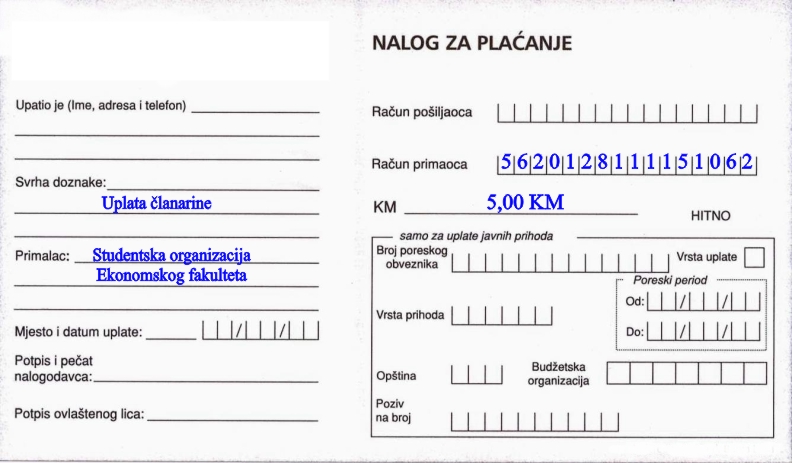 - upis za zimski semestar……………………………………………………………….. 40,00 KM