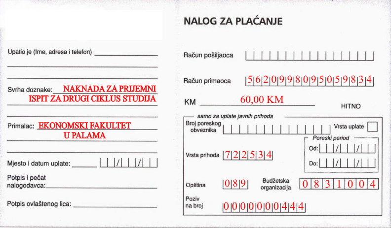 Instrukciju za uplate kandidati će dobiti na organizacionim jedinicama Univerziteta.