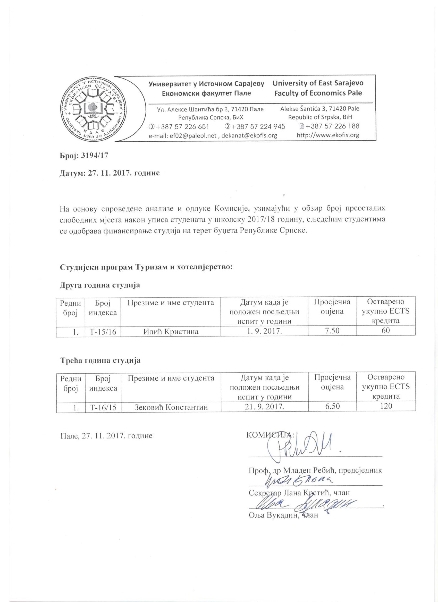 Сва права задржана © Економски факултет Универзитета у Источном Сарајеву