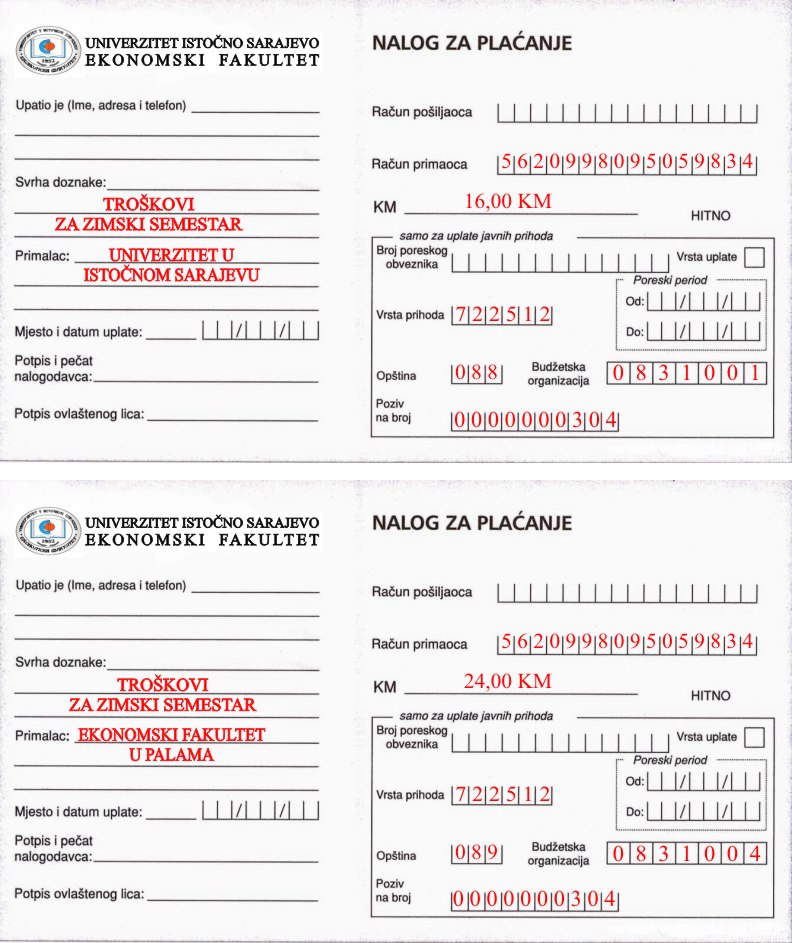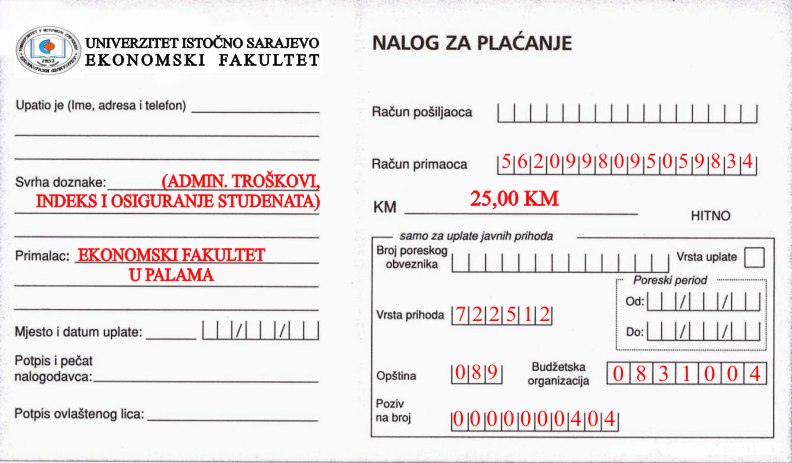- Studenti koji se upisuju na BUDŽET i SAMOFINANSIRANJE treba da uplate: