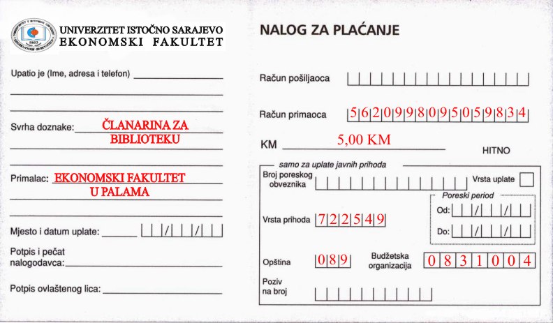 - članarina za biblioteku…………………………………………………………………… 5,00 KM